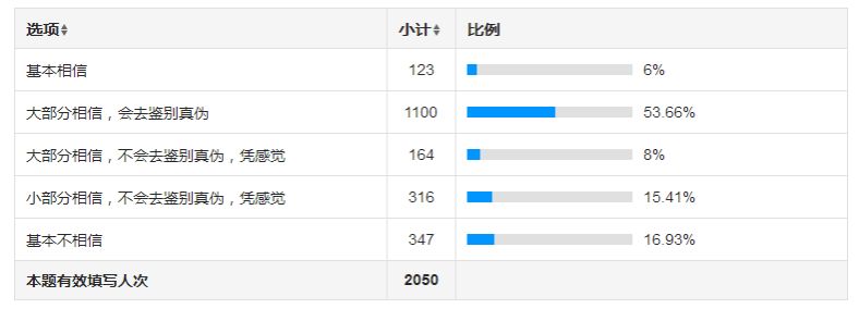 图10. 对于网上或者道听途说的信息您是否全部相信(例如朋友圈)